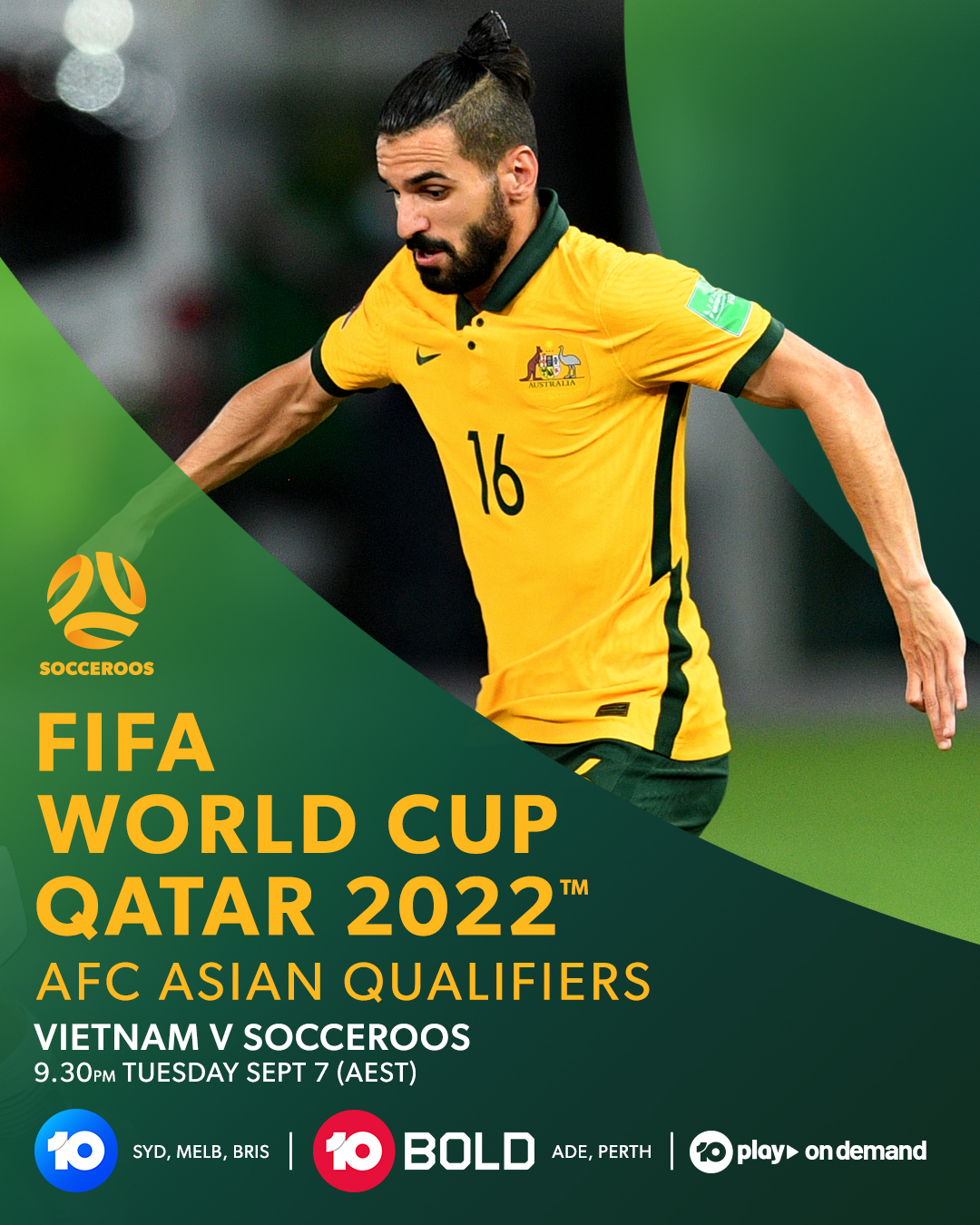 The Socceroos will play Vietnam on Tuesday 7 September live from 930pm AEST on 10 Bold and simulcast on 10 Play. The upcoming AFC Asian Qualifying matches across both groups will be streamed live and free on 10 Play. FIFA World Cup Asian Qualifiers screens Live from My Dinh National Stadium in Hanoi.